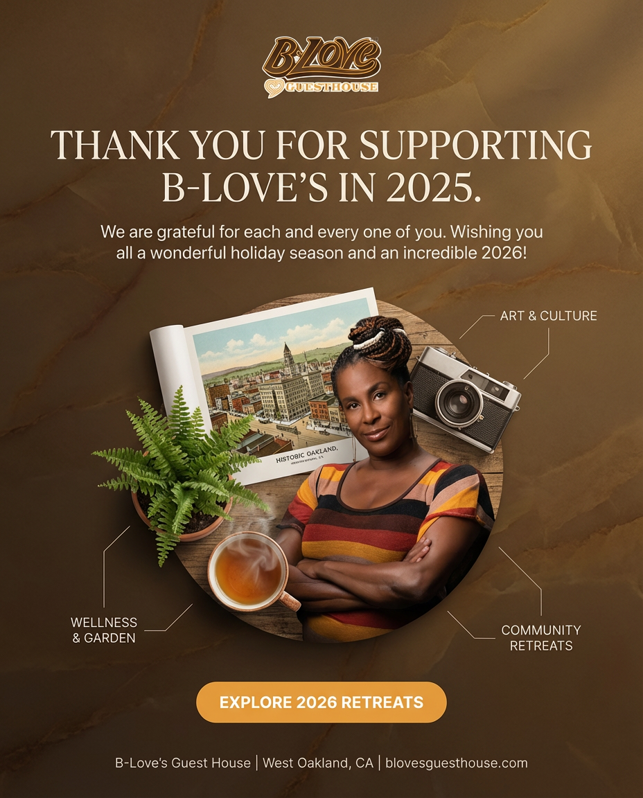 Hello, my name is Traci Bartlow aka “B-Love". I am an artist and community organizer born and raised in Oakland, CA. I am the proud owner and operator of B-Love’s Guest House, a unique extension to my lifestyle of wellness and creativity.